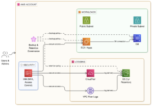 The AWS environment was enhanced without architectural redesign, focusing on governance and security improvements: